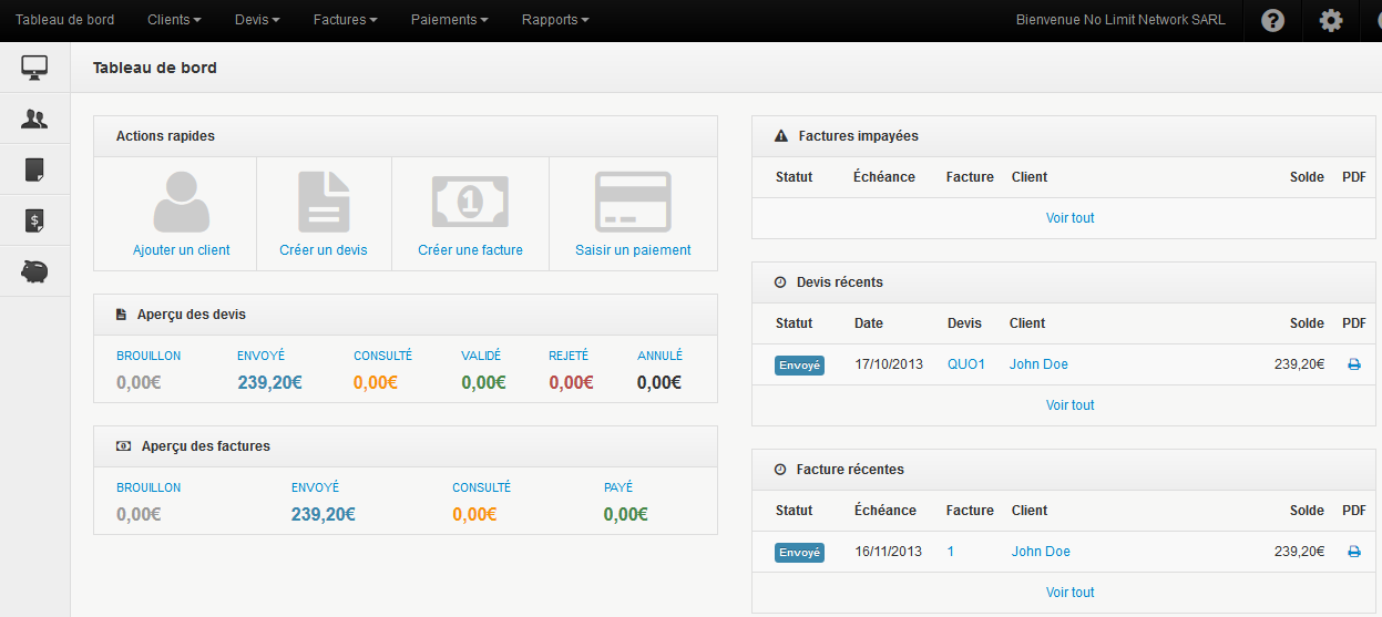 Nous vous proposons quelques écrans de la solution en bas de l’article, mais vous pouvez aussi déployer la votre: bambooInvoice, simpleInvoices.org, etc…