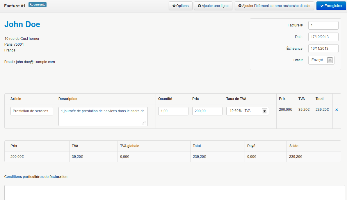 - Gestion des factures récurrentes ! Définissez la périodicité, la durée.